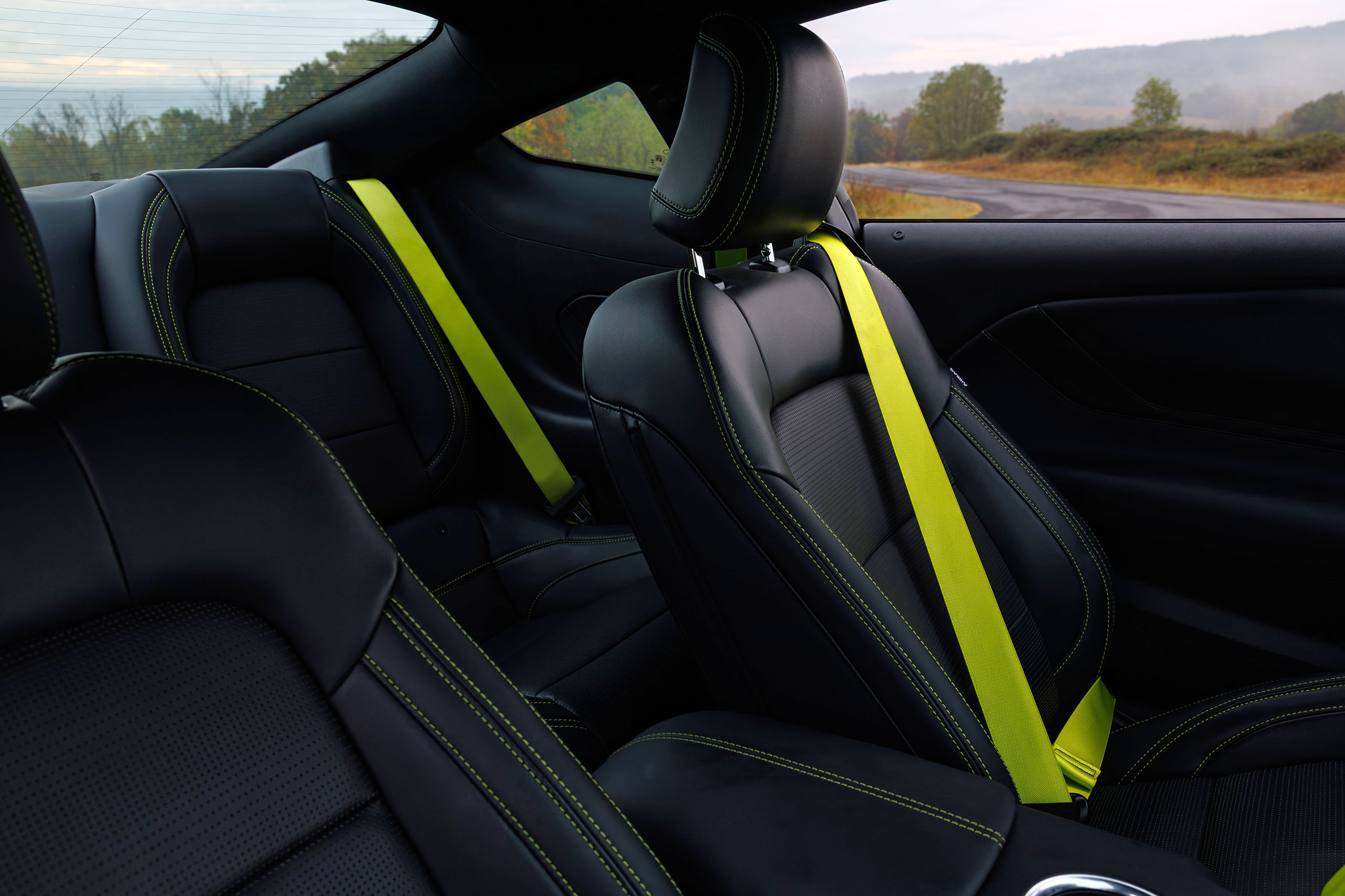 On the outside, the Mustang RTR differentiates itself from the rest of the range with RTR’s signature LED nostrils (that’s what I call them, anyway) plus gorgeous 12-spoke wheels backed by optional “Hyper Lime” highlighter-yellow calipers. The lime theme carries into the interior, on the seatbelts and the e-brake lever, but don’t freak out—you can leave them black if you like.