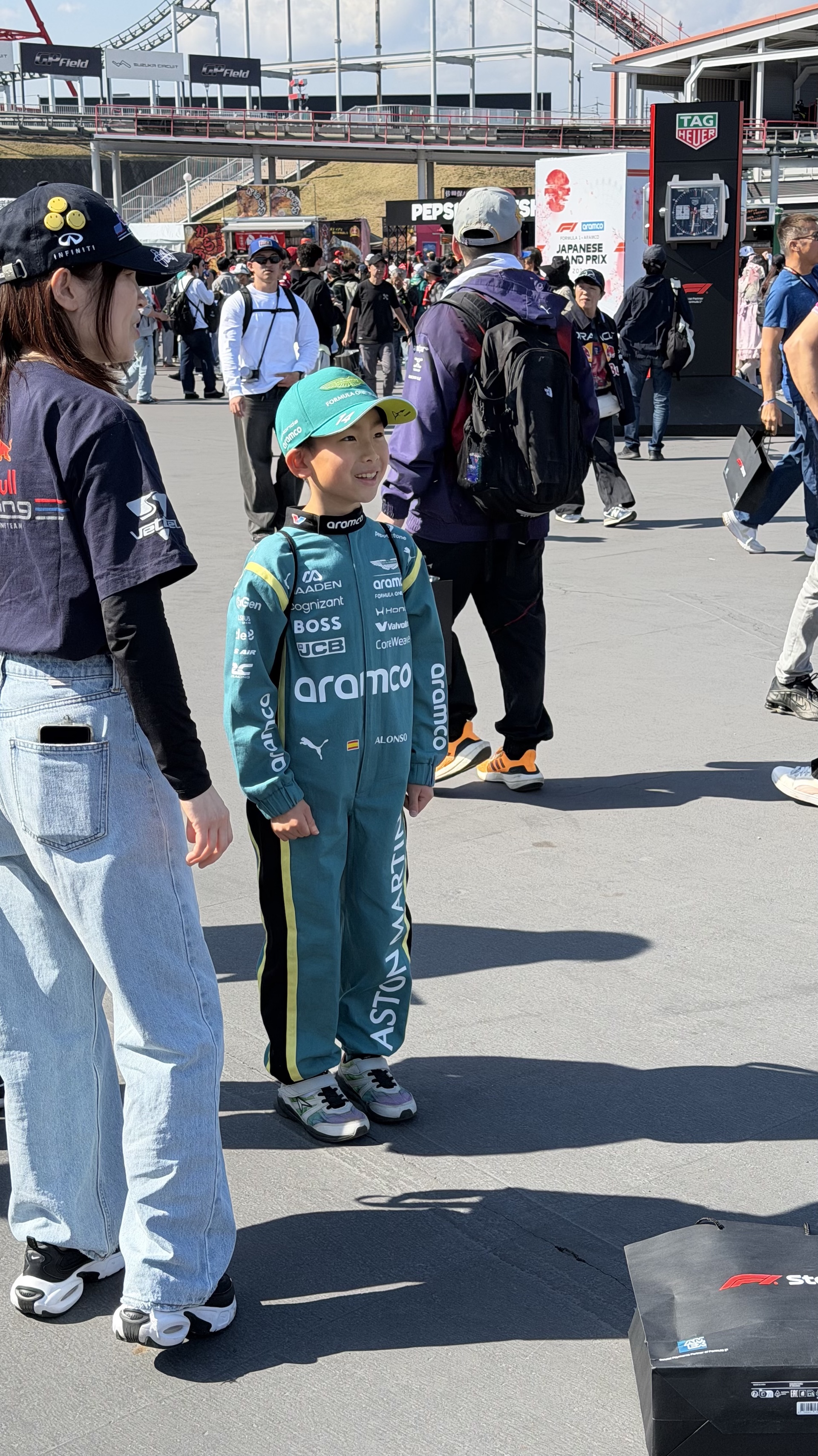 While there were loads of fans rooting for Ferrari, there’s no overlooking the local support for Honda; the track is owned by the automaker, and it’s part of a great complex of Honda-sponsored activities and venues. The overwhelming majority wore some sort of Honda gear, whether it was plain Honda, HRC, McLaren Honda, Red Bull Honda, or, despite their recent woes, loads of Aston Martin Honda gear.
