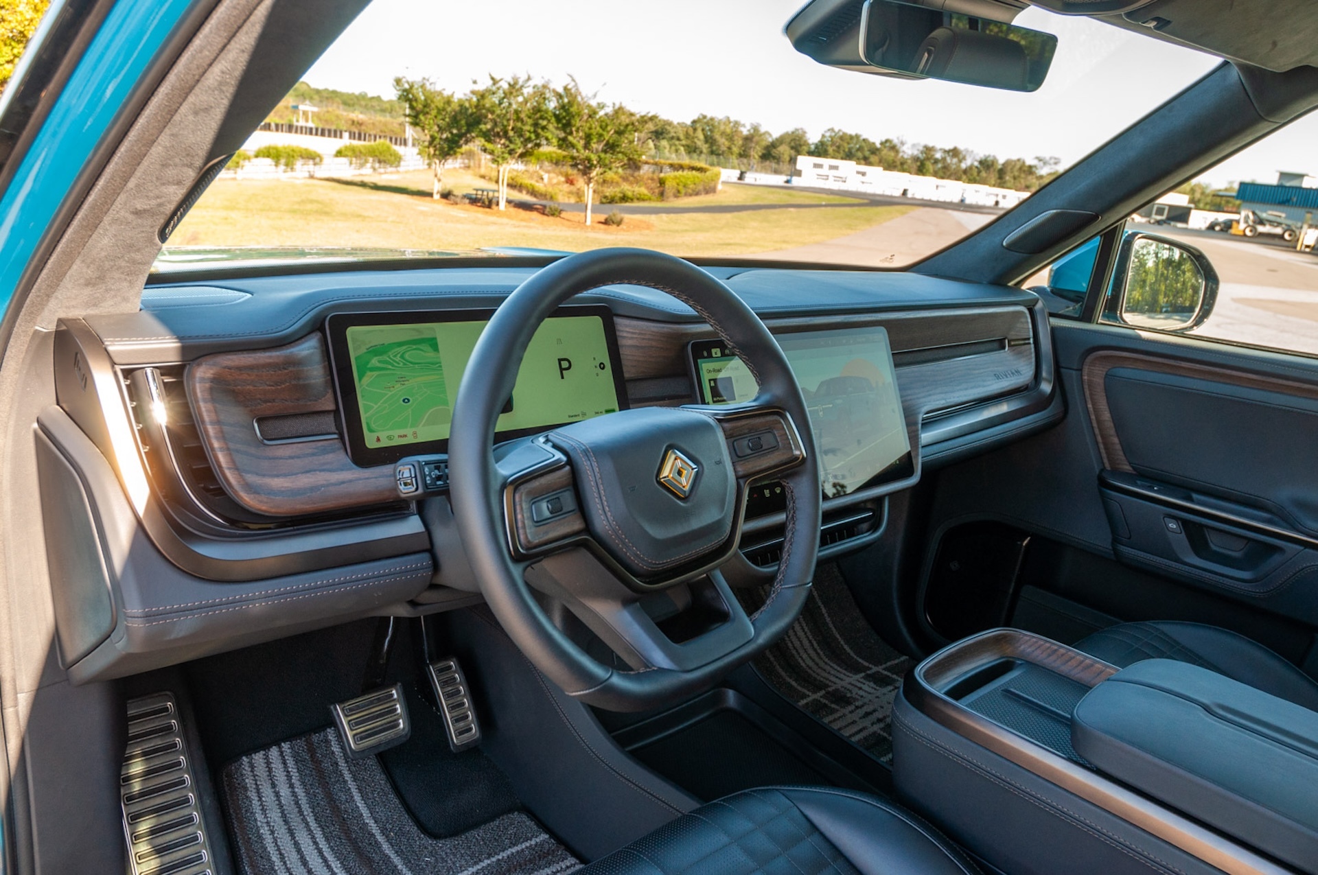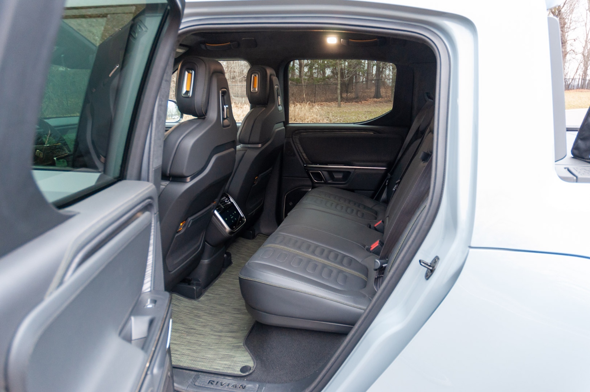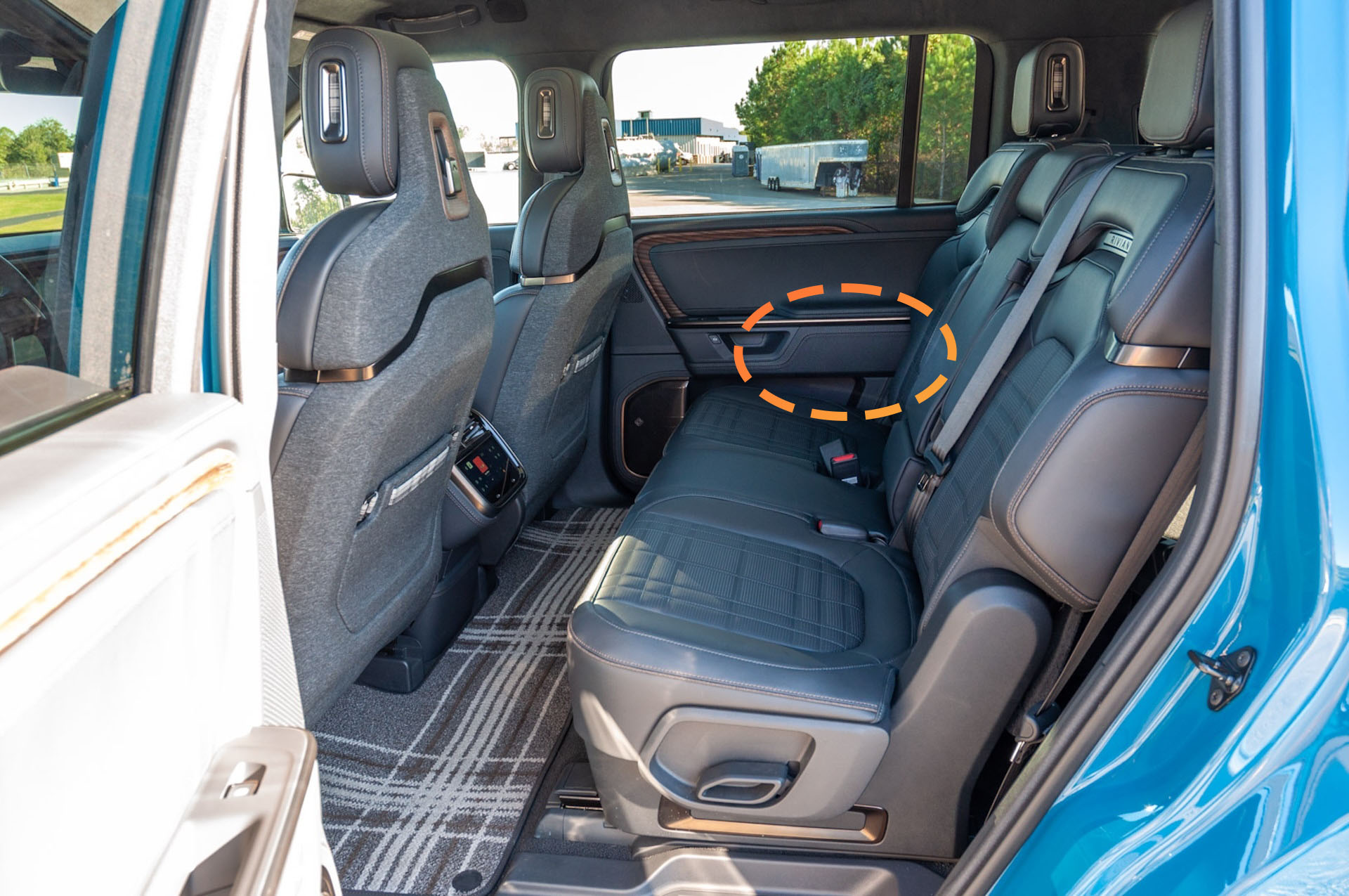The first run of R1 EVs had fully mechanical door latches, but the revision beginning in 2025 changed to a system where there is no physical connection between the handle or button that an occupant interacts with, and the release. This necessitated backup, failsafe door handles all around, and for the front passengers, they’re not hard to find—they’re black plastic that sits flush with the bottom of the door’s armrest, not far from the button. They’re actually in the same place that the mechanical handles were on Gen 1 vehicles, for front passengers.